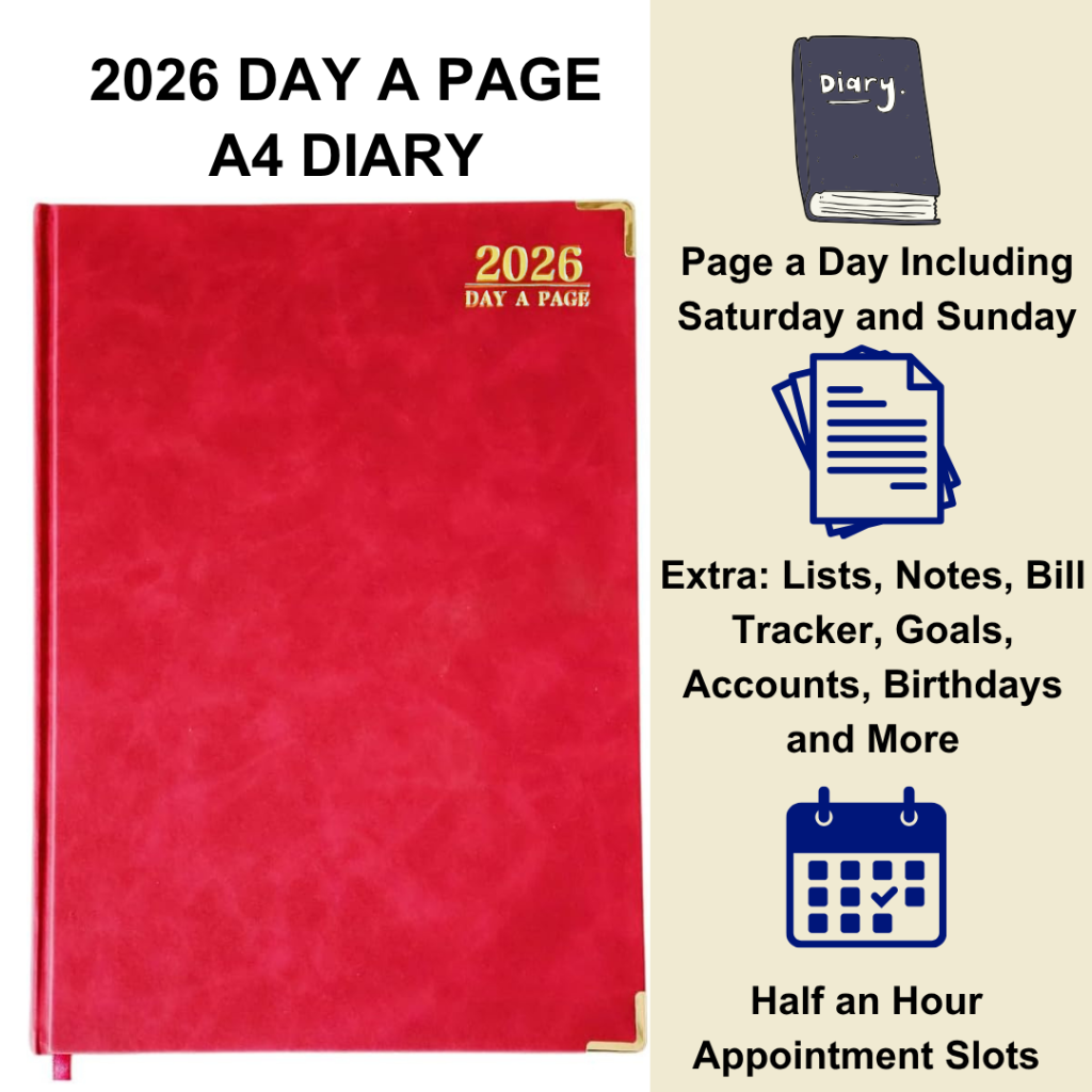 📔 A4 2026 Day-to-Page Diary – Hardback with Premium Features
